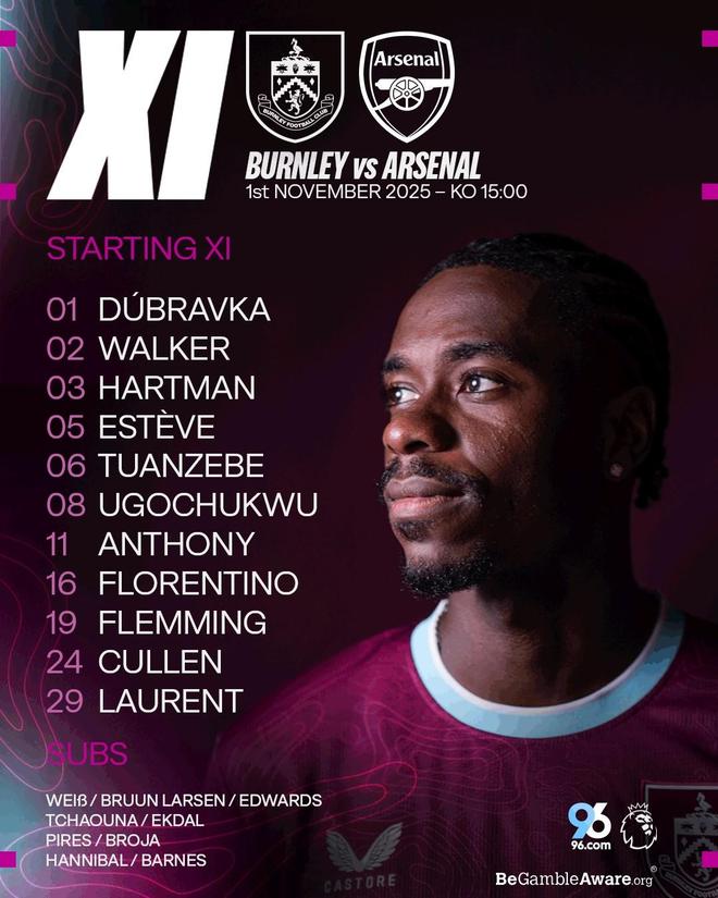 北京时间11月1日23:00,英超联赛第10轮继续进行,阿森纳客场挑战伯恩利,赛前双方首发阵容陆续公布:阿森纳首发:22-拉亚、33-卡拉菲奥里、4-加布里埃尔、2-萨利巴、12-廷贝尔、10-埃泽、36-苏比门迪、41-赖斯、19-特罗萨德、14-哲凯赖什、7-萨卡伯恩利首发:【上咪咕独家看英超】